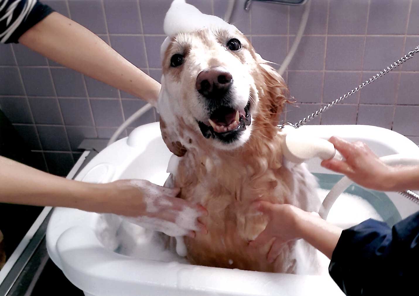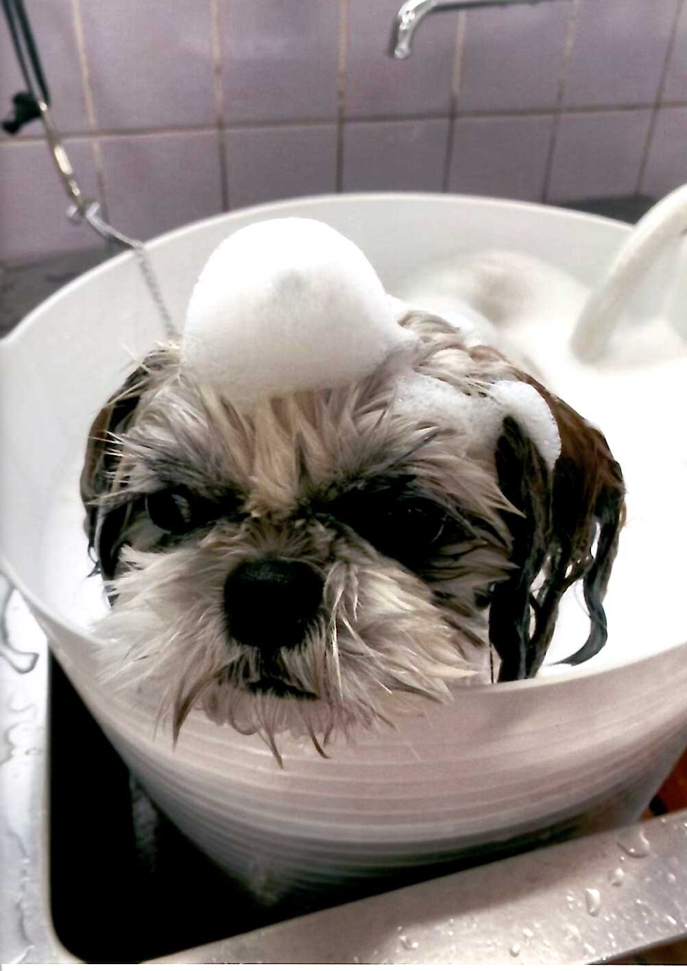 ①余分な皮脂を分解・洗浄します。脂っこいわんちゃんもふんわり仕上がります。